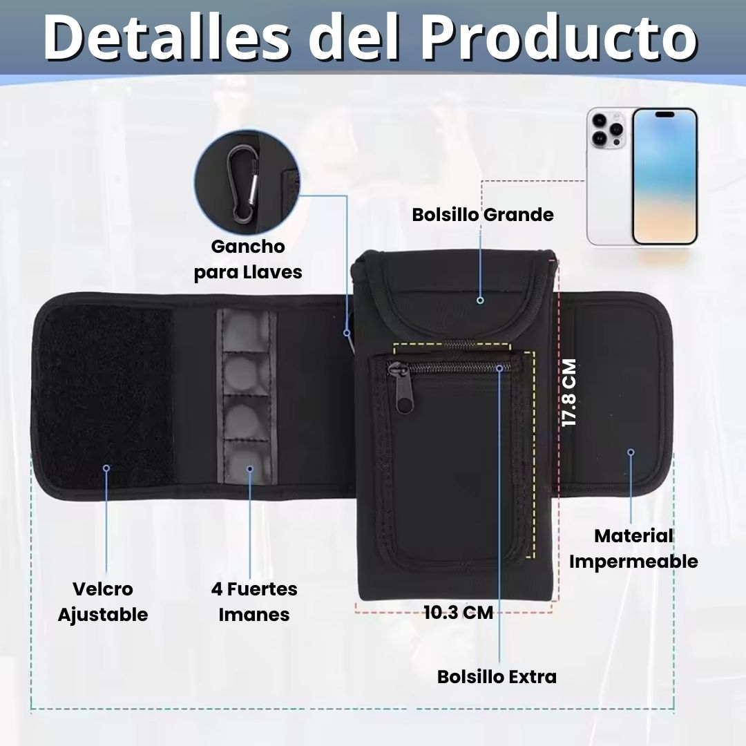 Olvídate de dejar tu bolso en el suelo sucio del gimnasio o buscar desesperadamente donde dejar tus cosas de forma cómoda. Gracias a su imán potente, podrás fijarlo en cualquier superficie metálica, manteniéndolo limpio, seguro y siempre accesible.